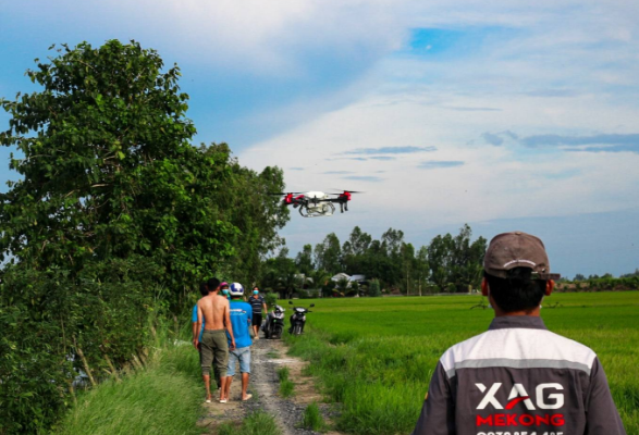 May 6, 2022, Dong Thap, Vietnam - As the monsoon season begins with heavy rainfall, XAG is actively expanding the use of agricultural drones in Vietnam for more sustainable rice production. With the price of agricultural inputs soaring, Vietnamese farmers can now use XAG's drones to grow more rice, using fewer resources. From direct seeding, pesticide spraying to fertilizing, XAG's agricultural drones are increasingly popular among rural youth who aspire to earn a commensurate salary as a machine pilot. unmanned flight.